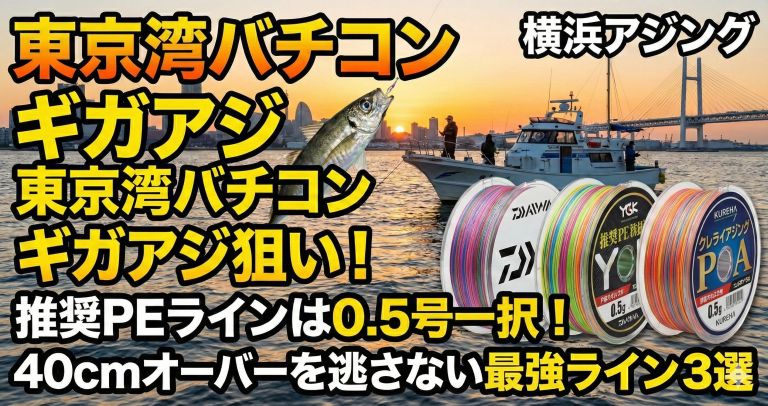 東京湾バチコンアジングでギガアジ(40cm超)を確実に獲るためのPEライン選び。なぜ一般的な0.3号ではなく「0.5号」が最強なのか?太田屋に通い込む筆者が、強度と感度を両立したダイワ・YGK・シーガーの厳選おすすめ3選を紹介します。 -