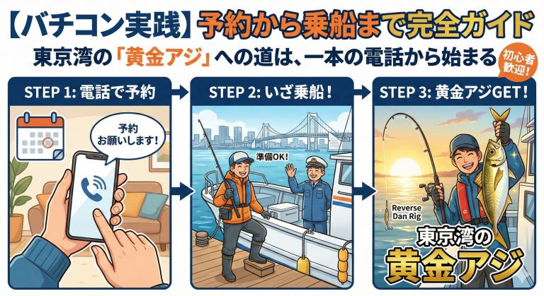 【バチコン実践】予約から乗船まで完全ガイド。東京湾の「黄金アジ」への道は、一本の電話から始まる