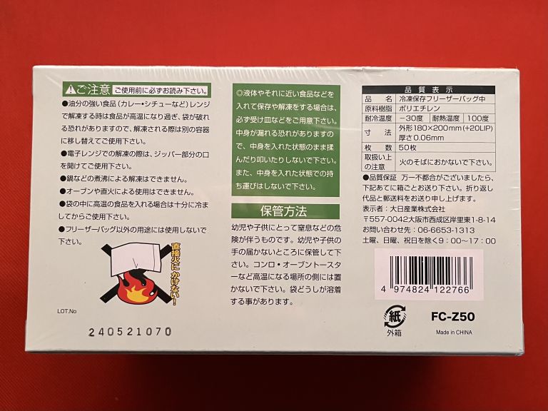 冷凍保存フリーザーバッグ