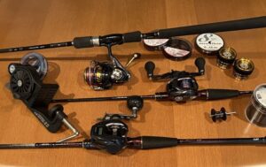 替えスプールを購入して上の写真の2パターンを用意してあります。スプール交換が簡単にできるのでバチコン用ベイトモデルとしても使用する予定です。