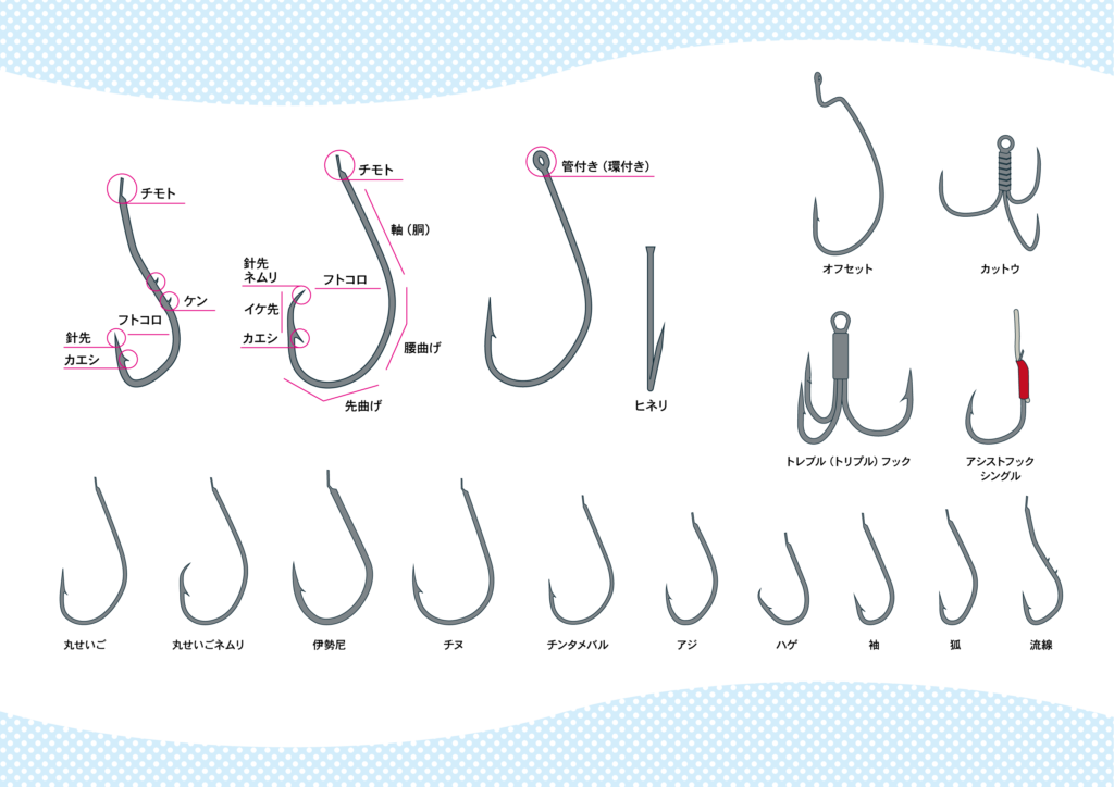 餌釣で使用されているアジ針、ムツ針について調べてみました。