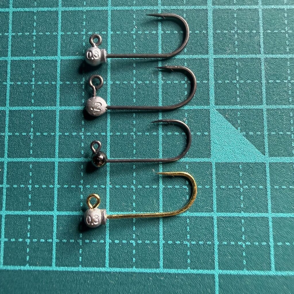 乗せ用タックルのジグヘッドはこれまで通り「issei 海太郎 レベリングヘッド太軸金鈎 #8 0.3g」で良いと思いました。他のジグヘッドを使って大きく異なるという感触は得られませんでした。自動フッキングなのでフックポイントが外向きがよいのかも?程度の感想です。