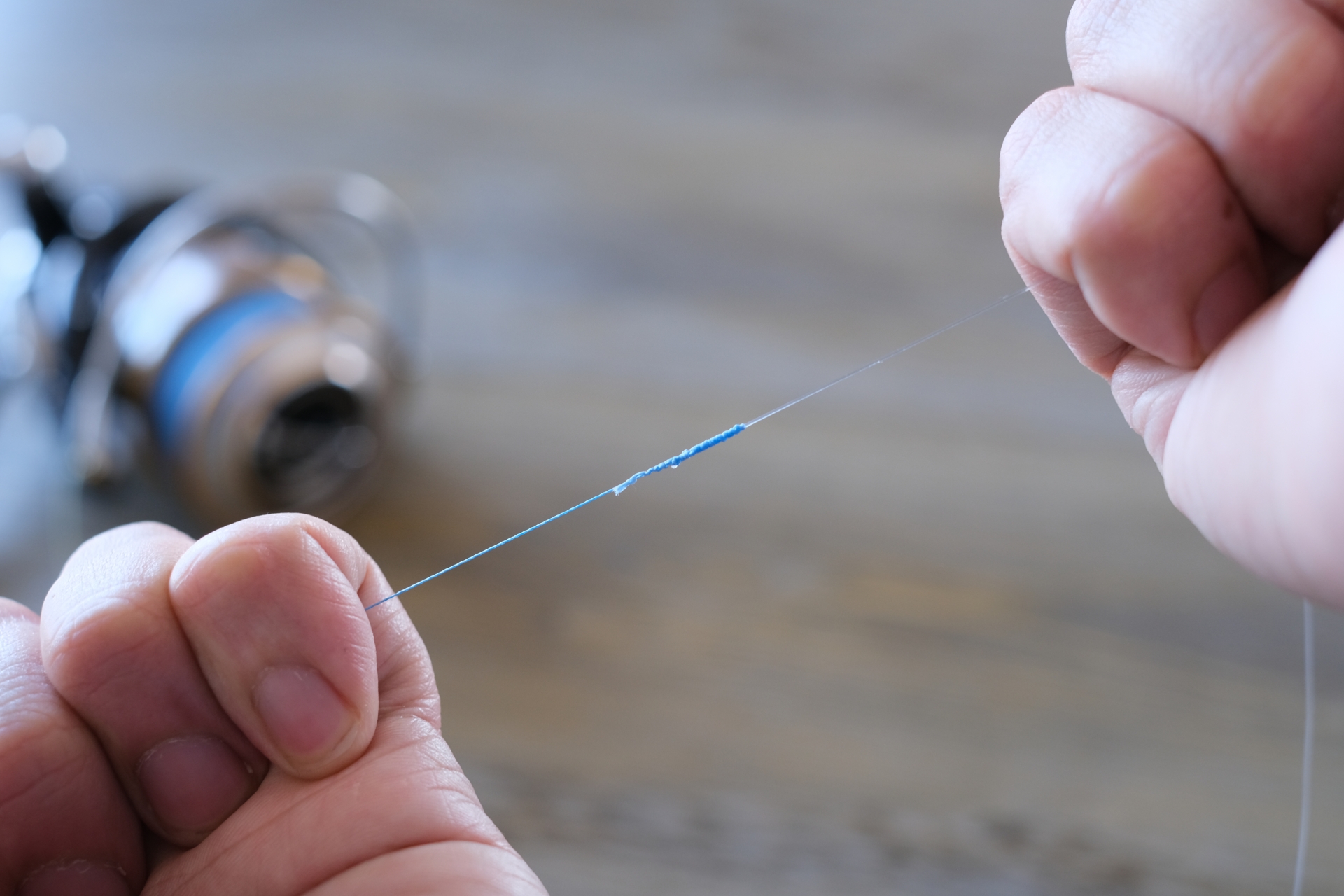 ラインの素材そのものの結節強度があり、さらに、結び方の影響によって最終的な「引張強度」が変わります。