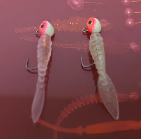 最初は動画を観て購入しました。間違って桜ドットグローを2袋買ってしまいましたが、あまりに釣れたので無駄ではなかったと思っています。新カラーがでたときにオレンジドットグローを追加しました。鈎にまっすぐに差すのが難しいワームの一つです。