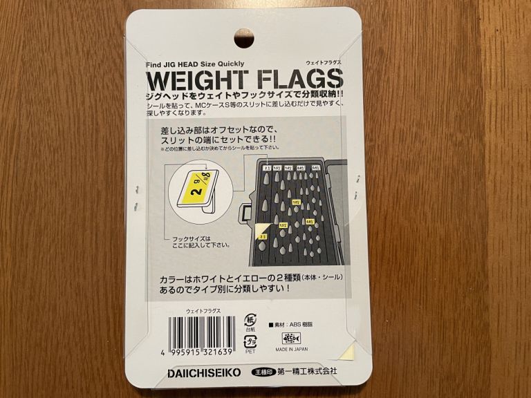 特にフックサイズは印字がないものがほとんどですので、後からわかるように第一精工 ウェイトフラグスを使用しました。