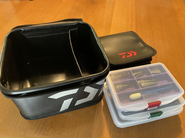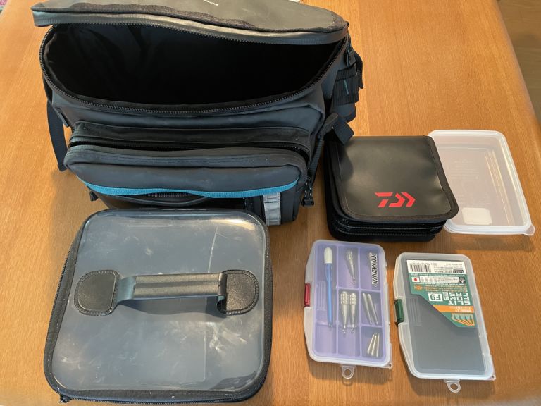 フロントポケットにシンカーケースとジグヘッドケースを収納しました。