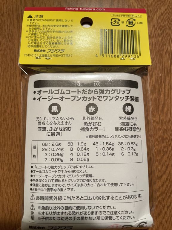 バチコン対応のウェイトは、フックサイズが#6のみのラインナップです。