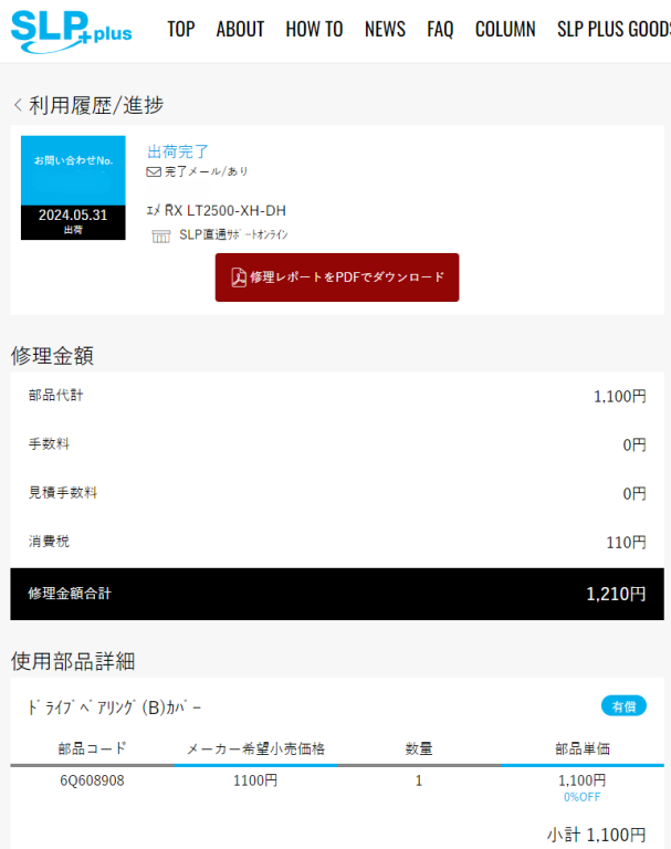SLP Plusに直接修理依頼して無事に戻ってきました