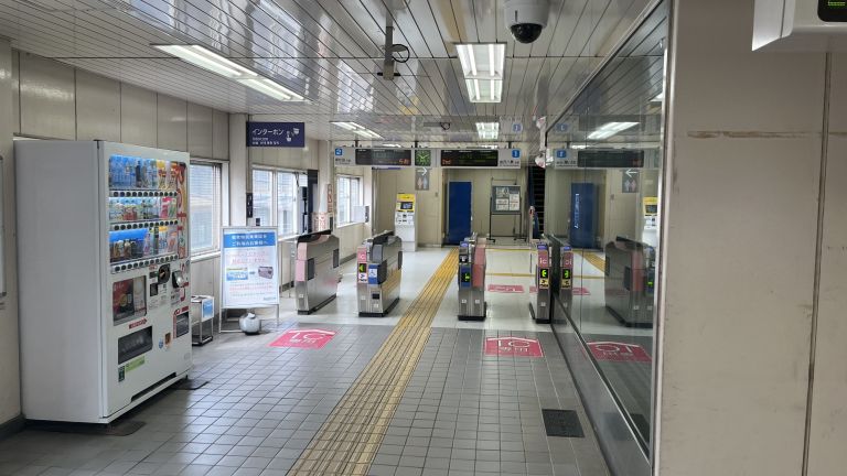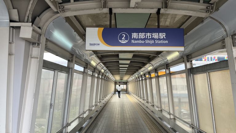 南部市場のまん前にある駅です。傾斜がやや緩いスロープあり階段とエレベータがあります。