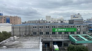 はっきりとした境界線を確認できませんでしたが、おそらく水産棟と青果棟の前の道路のあたりにバリケードで仕切られていることだと思います。