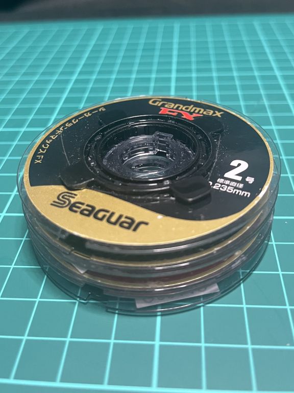 写真はメインリーダーに使用する製品です。「シーガーグランドマックス FX」(しなやか)が糸癖がつきにくく60m巻でお気に入りです。グランドマックスシリーズはスプールを連結できます。