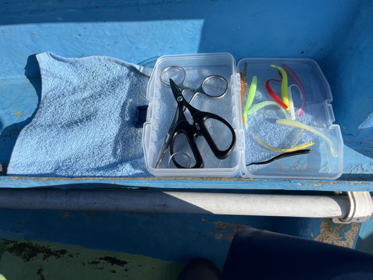 またこのケースに使ったワームやジグヘッドやオモリを入れて持って帰ったり、ラインの切れ端などゴミをいれて持って帰っていました。