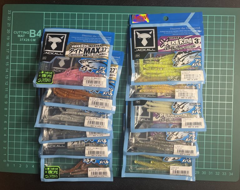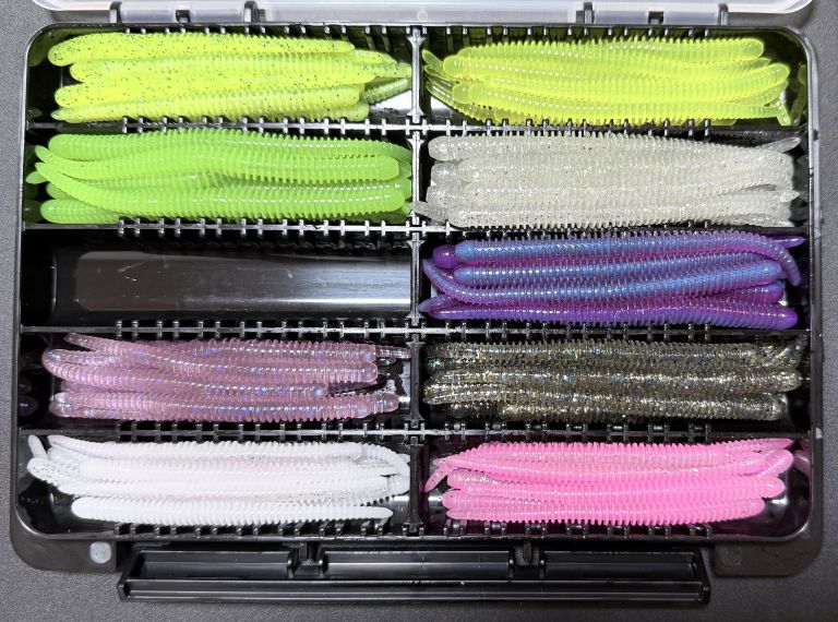 まずはイージーシェイカーを軸に揃え、不足をダイワやジャッカルやレインなどから補充するとワームの数が減らせます。
