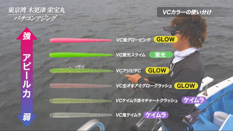 コマセ(撒き餌)についたアジは非常にセレクティブ。ワームの「波動(形状)」と「カラー」が少し違うだけで、釣果に天と地ほどの差が出ることがあります。