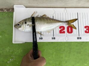 アジのサイズは中型(25cm前後)が平均でメガアジ(30cm~40cm未満)、ギガアジ(40cm~50cm未満)、テラアジ(50cm以上)と順にサイズが大きくなりますが、ギガアジ以上は稀です。メガアジが入る幅があれば十分です。